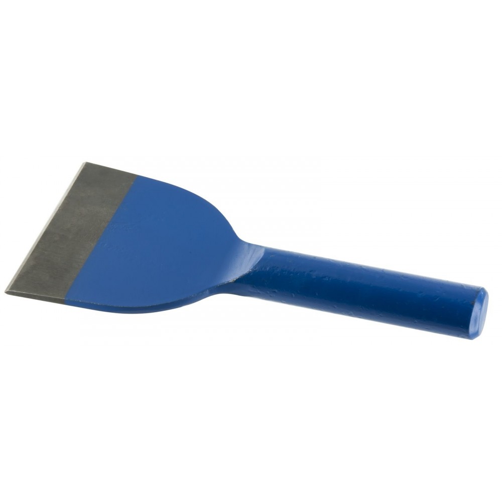 Ciseau en acier forgé réaffutable. Longueur 245 mm. Taillant de largeur 100 mm. Pour couper les briques, décoller le carrelage et surfacer de la pierre ou du béton. Marque Revex. Fabrication française.